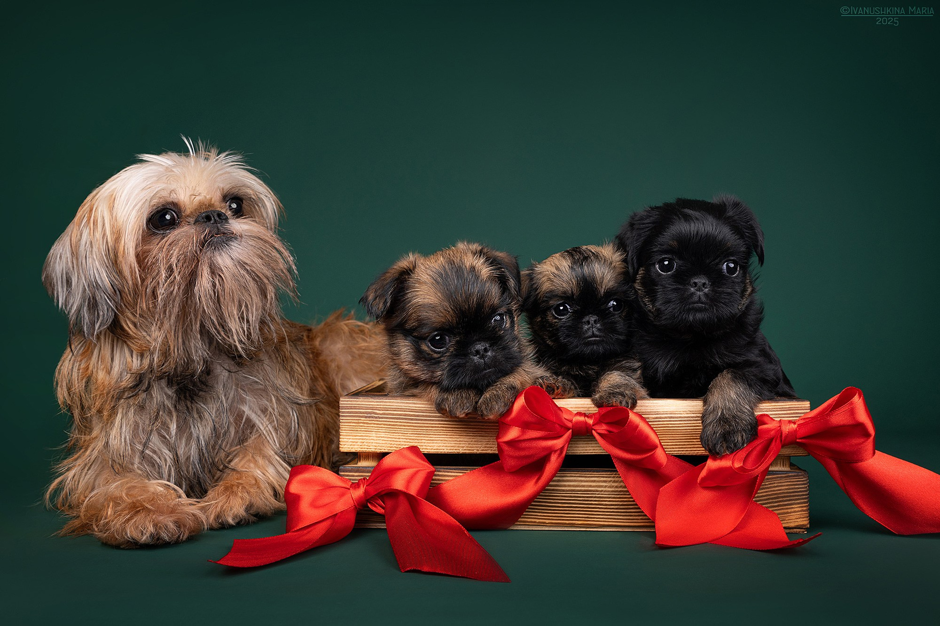 Подробнее о подготовке и о том, как проходит съемка, можно почитать в Заметке о предпродажной фотосессии щенков.