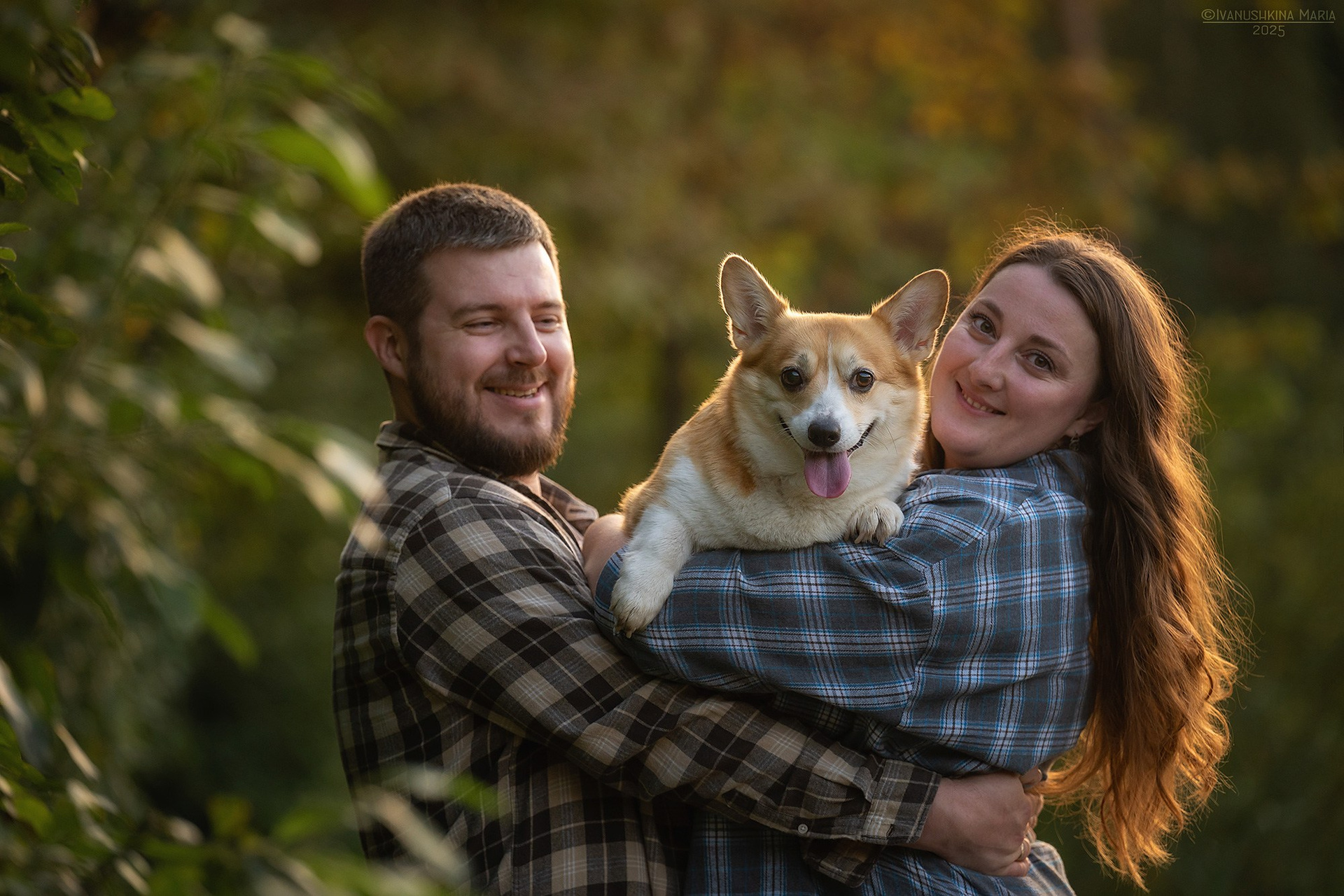 Семейные фотосессии с собакой на улице в Москве и Московской области.
